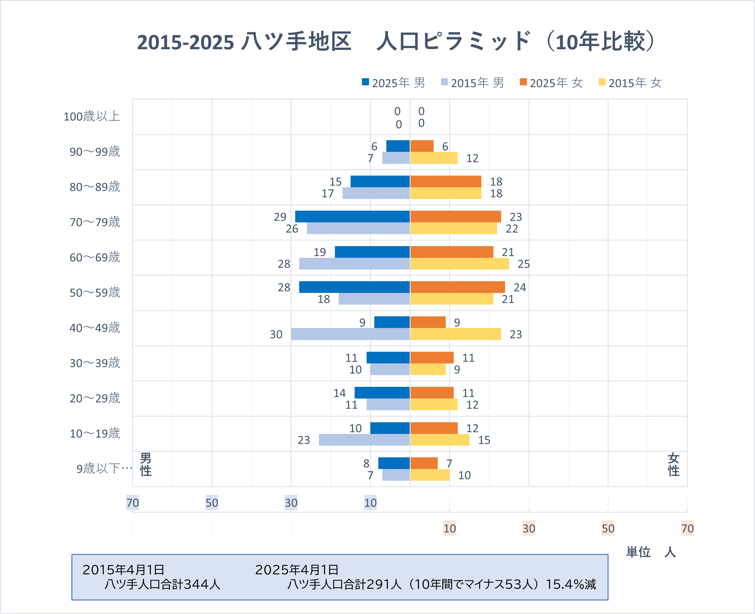 八ツ手地区 男149人 女142人 計291人 世帯数【2025年4月1日現在】