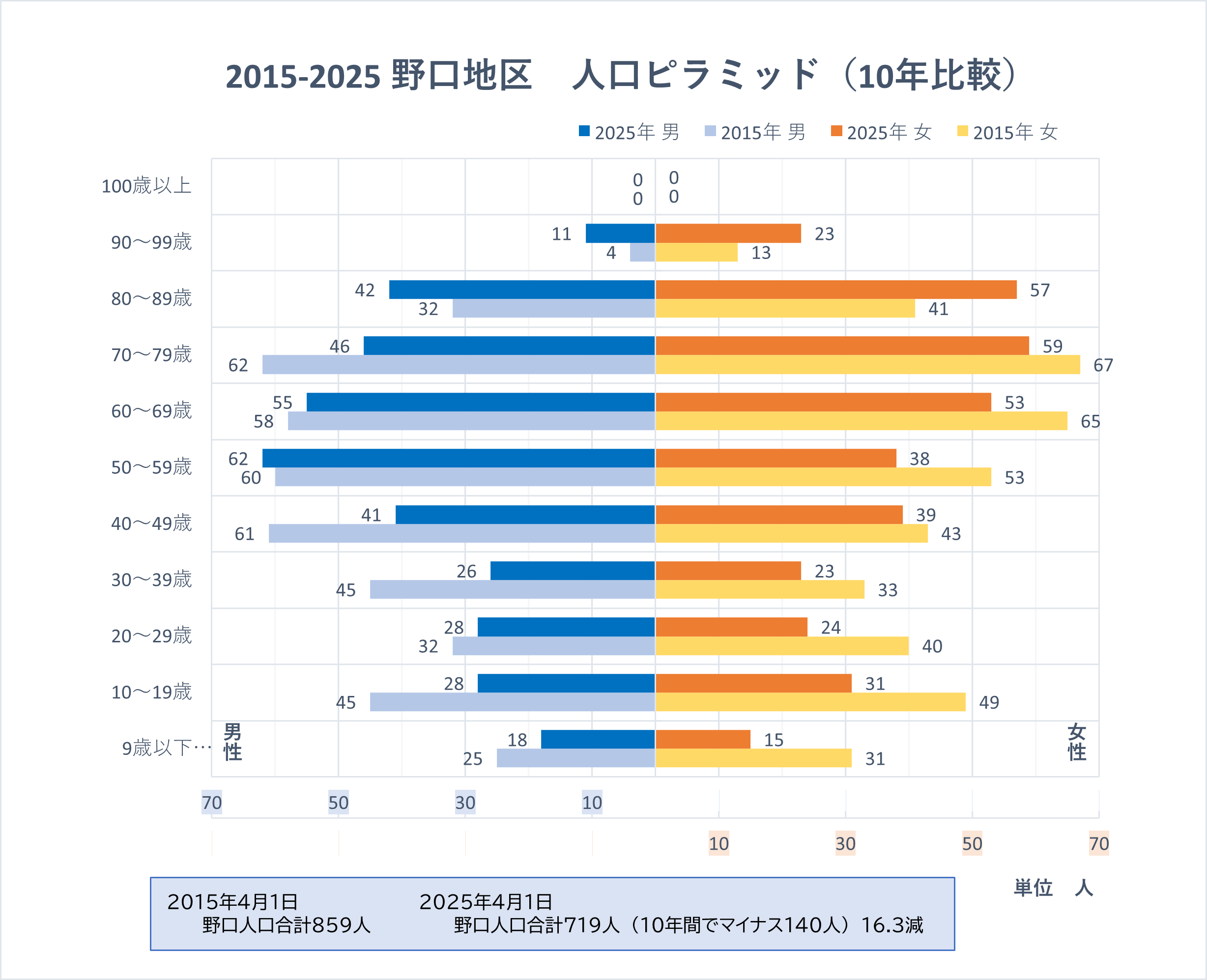 野口地区 男357人 女362人 計719人 【2025年4月1日現在】